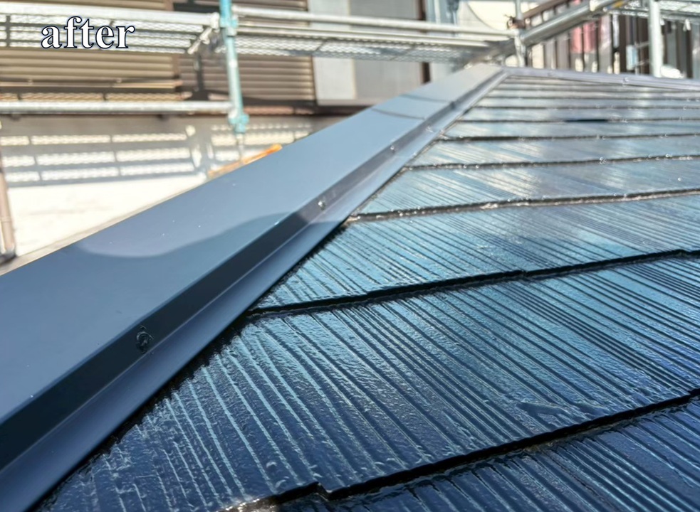 施工後は、歪みのない真っ直ぐで美しい棟ラインとなり、
