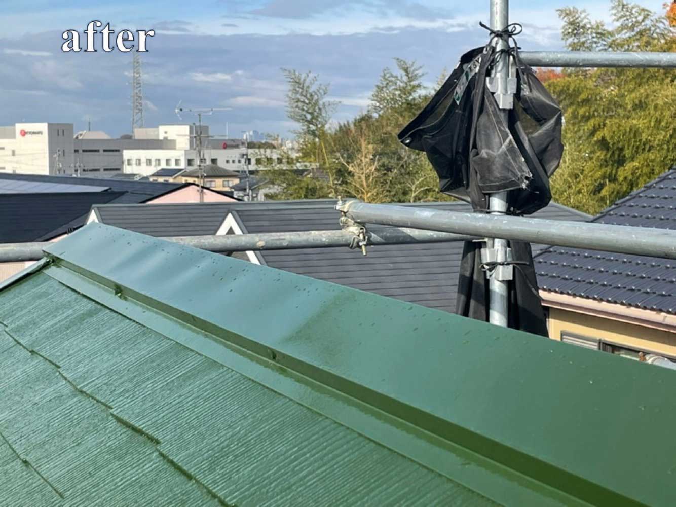 日進市 K様邸 板金交換・屋根塗装工事 板金交換 貫板→タフモック 屋根 下塗り エポラオールプライマー 中塗り パラサーモシリコン 上塗り パラサーモシリコン 色 グラスグリーン 縁切り 2020年12月14日施工完了 ARCHIVE 前の記事 次の記事